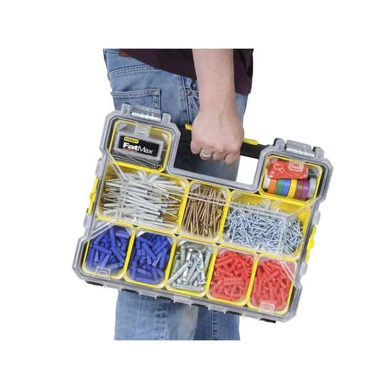 Idéal pour les petits accessoires, l’organiseur Stanley FatMax est doté de 10 compartiments amovibles peu profonds. Étanche à l’eau et à la poussière grâce à son joint d’étanchéité situé sous le couvercle.