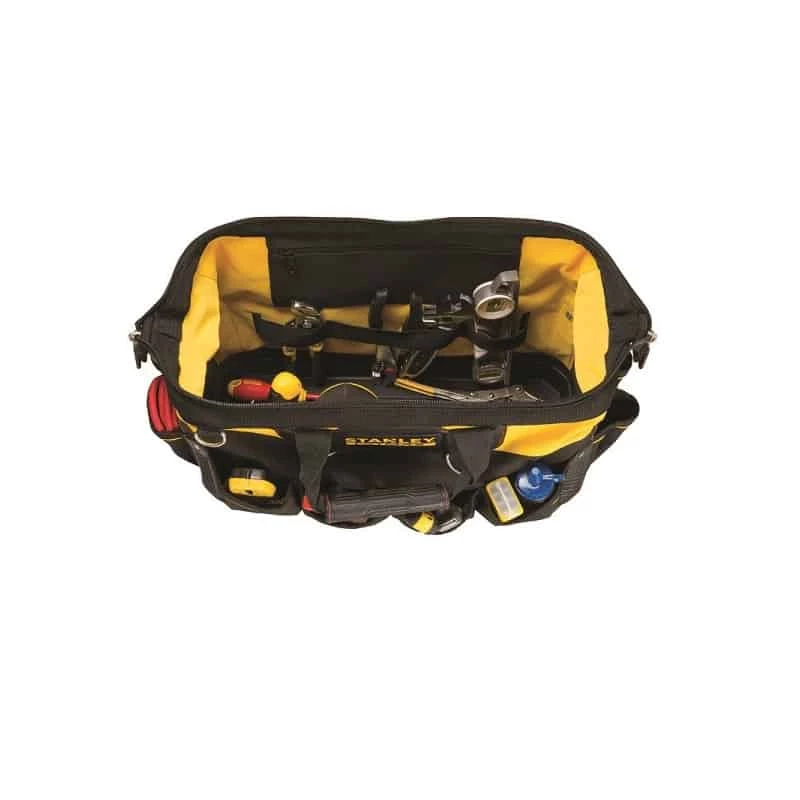 Conçu pour durer grâce à sa base rigide résistante à l’eau et sa structure métallique, le sac à outils 1-93-950 STANLEY FatMax est équipé d’une poignée surpiquée et renforcée avec une enveloppe caoutchoutée.