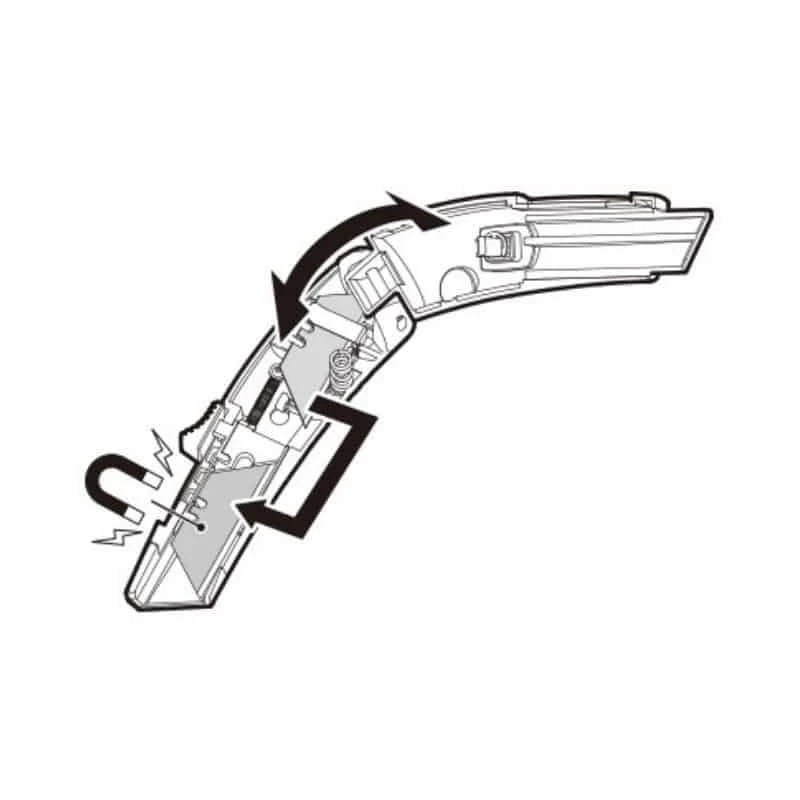 Le couteau utilitaire VR102 possède une lame auto-rétractable et se bloque facilement via la molette. La lame est retenue par fixation magnétique.