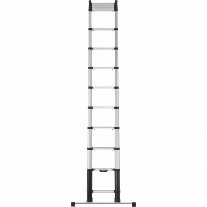 L’échelle télescopique Prime Line de Telesteps possède une barre stabilisatrice, des pieds en caoutchouc et des marches légèrement inclinées, rainurées et bien parallèles au sol pour une stabilité et une sécurité maximale. . Elle s’utilise avec un angle d’inclinaison de 75°.