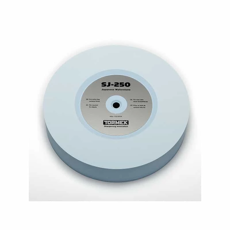 La Tormek Japanese Waterstone SJ-250 a un gain de 4000 et donne une finition glacée tel un miroir avec quasiment aucune rayure visible. Conçue pour obtenir la surface la plus lisse possible, elle ne retire que très peu de matière, et par conséquent ne peut être utilisée pour former un tranchant d’outil.